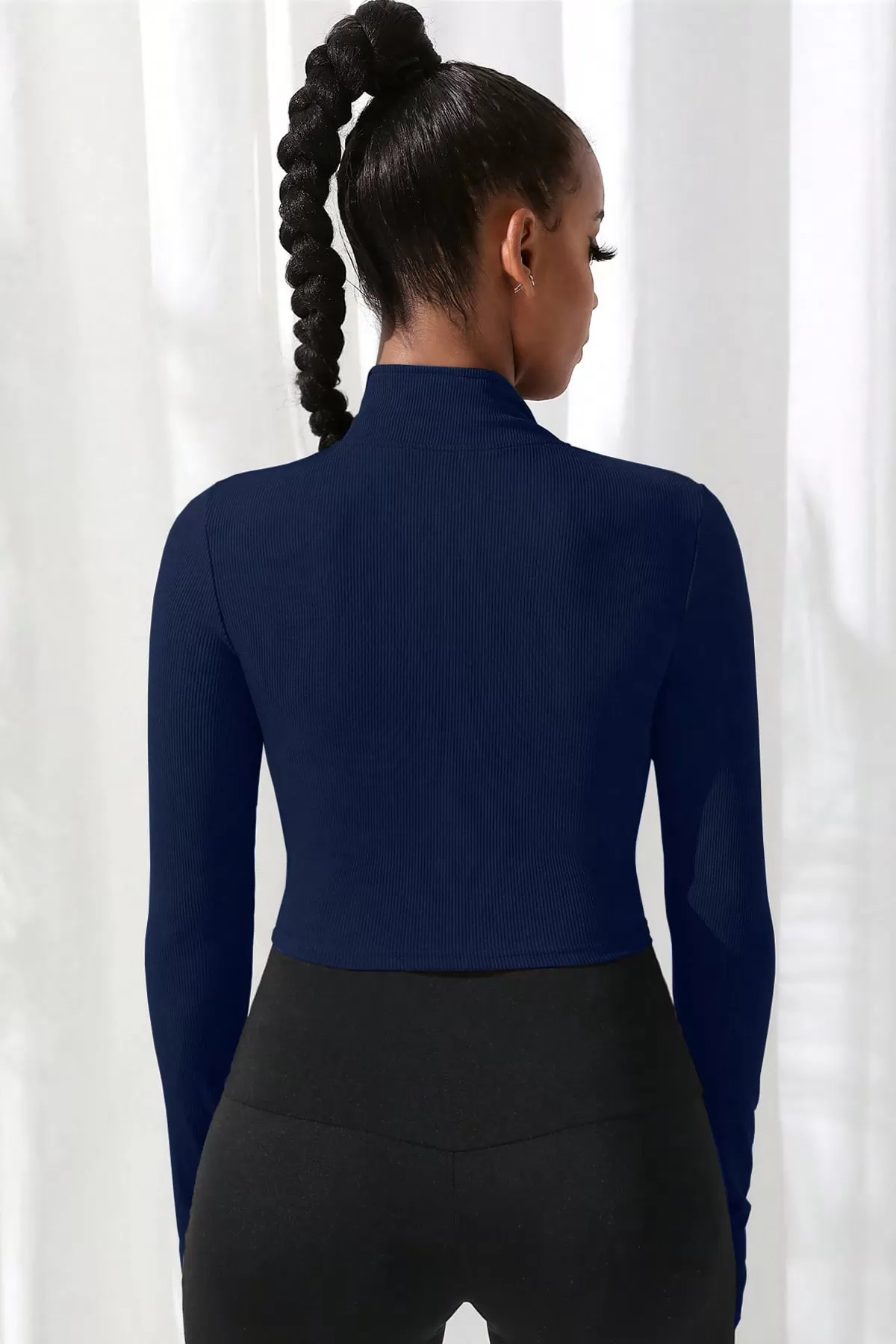 Vionya Kadın Uzun Kol Fermuarlı Parmak Geçmeli Dik Yaka Crop Top, modern tasarımı ve kusursuz kalıbıyla günlük stilinize dinamizm kazandırır.